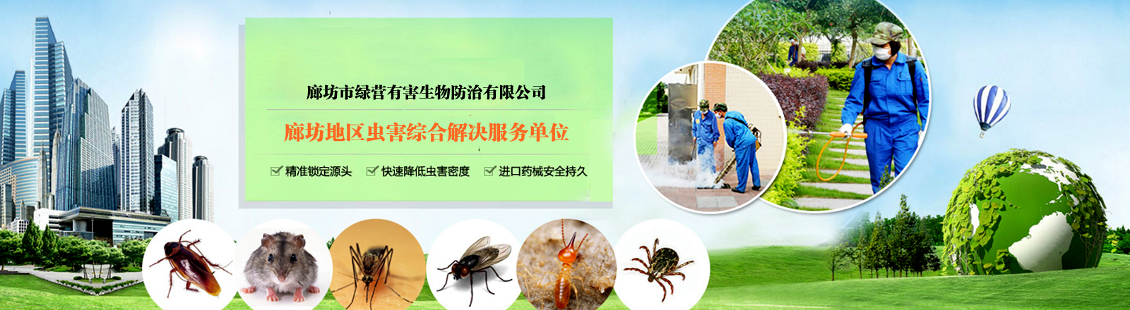 廊坊市綠營有害生物防治有限公司從事新建、改建、擴建房屋的白蟻預防和滅治工程及家居有害生物綜合治理工程(包括滅白蟻、滅老鼠、滅蟑螂、滅蚊蠅、滅螞蟻、滅跳蚤、滅蛀蟲、滅臭蟲、殺螨蟲、殺蜈蚣、殺蜘蛛、殺潮蟲、殺野蜂,殺衣魚、殺千足蟲、驅蛇防蛇等);針對室內外的白蟻及各種害蟲防治具有多年的實踐經驗...